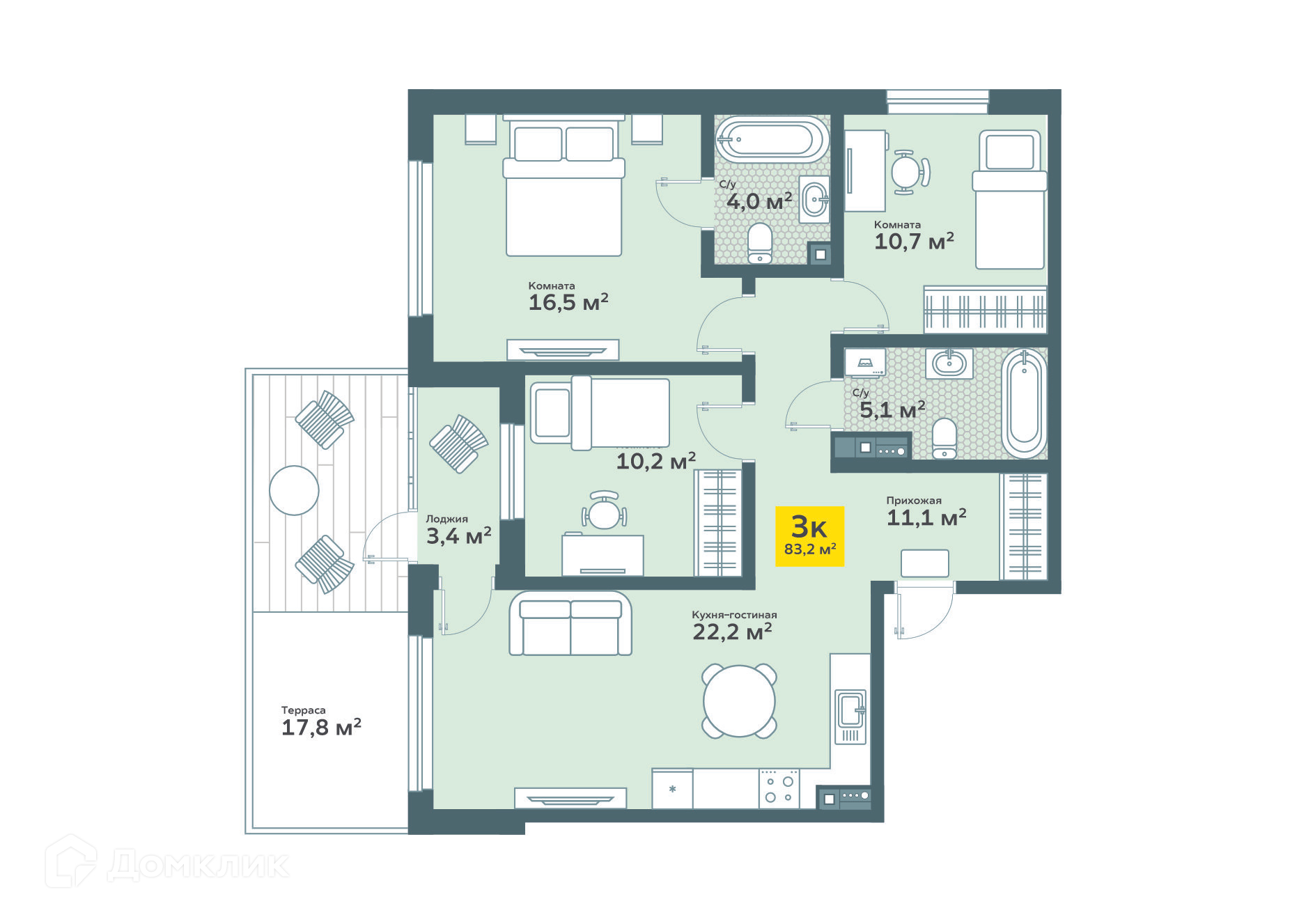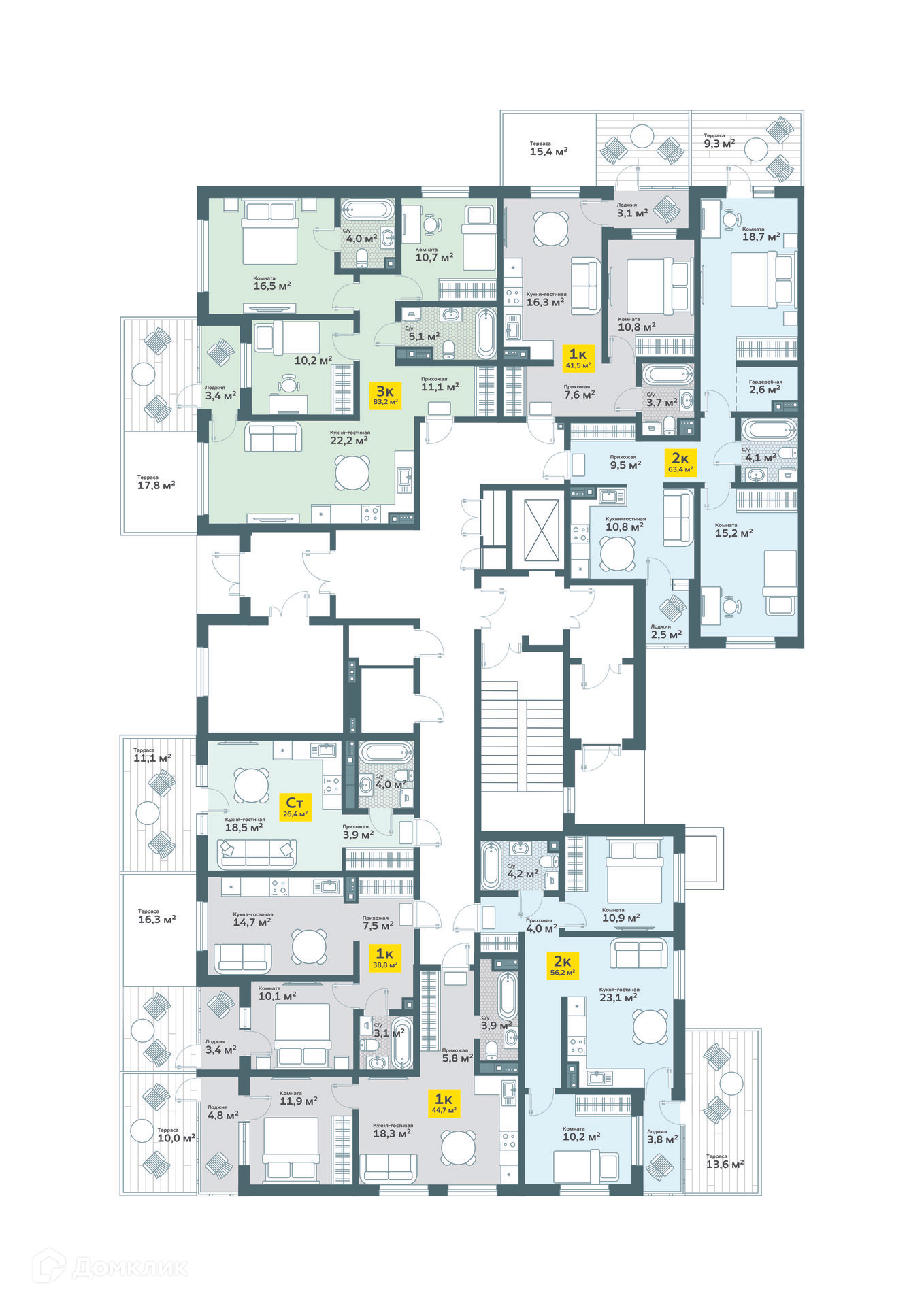 Площади квартир