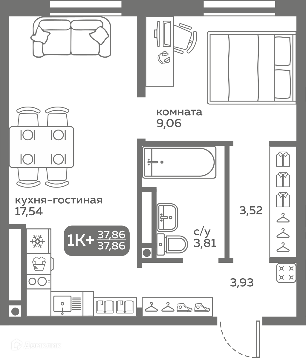 Планировка 1 комн. в ЖК Меридиан Слобода