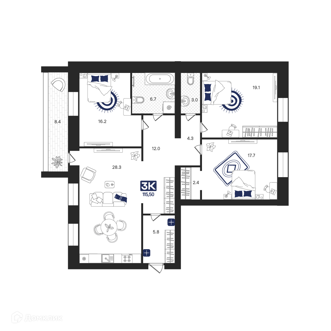 Площади квартир
