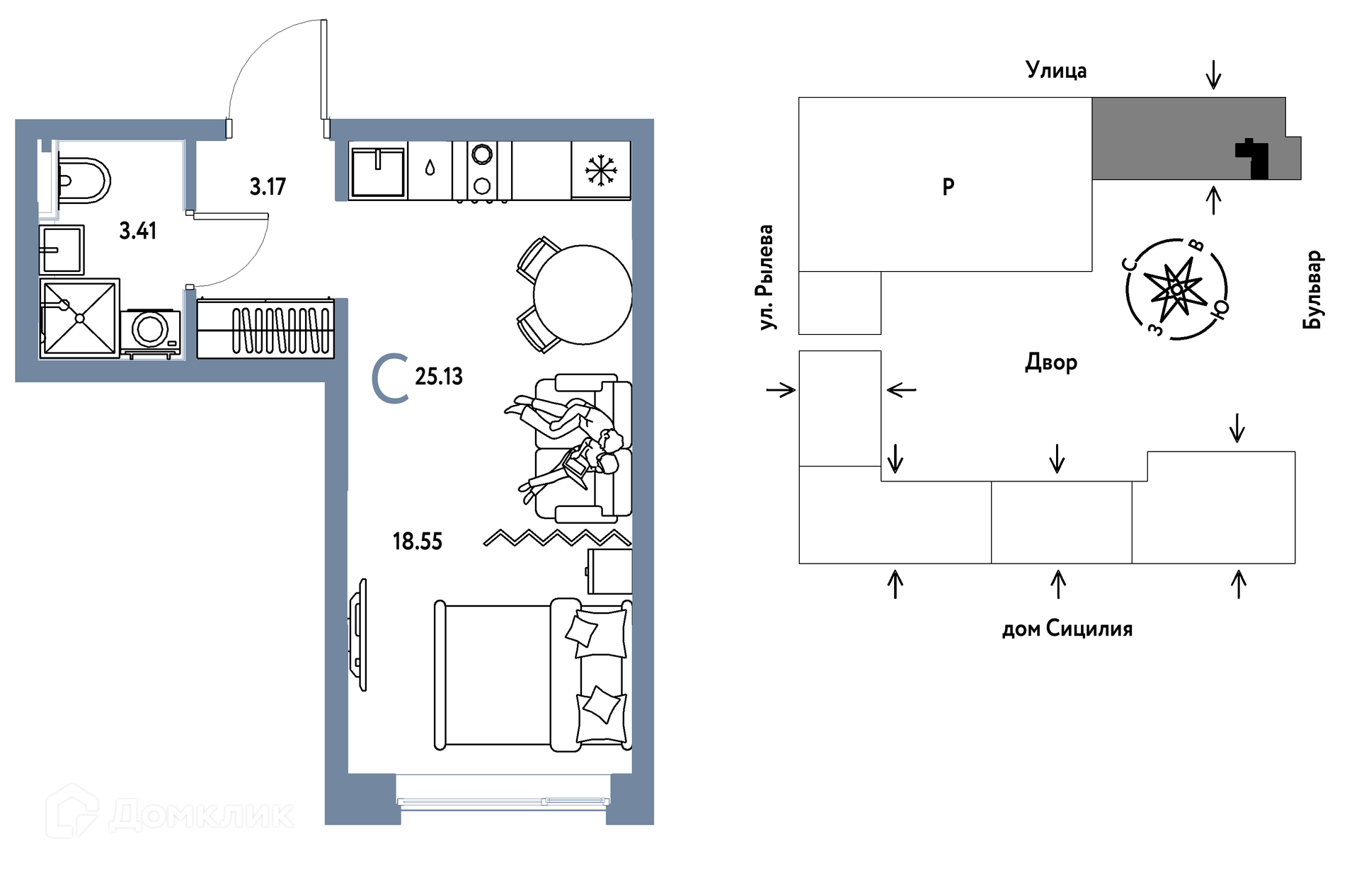25.13 - 54.61 м²
