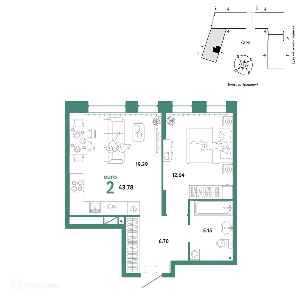 Доступна к покупке 2-комнатная квартира в современном жилом комплексе "ЖК «Домашний»" 🏢. Квартира расположена на 2-м этаже 16-этажного дома. Отличный вариант для инвестиций.