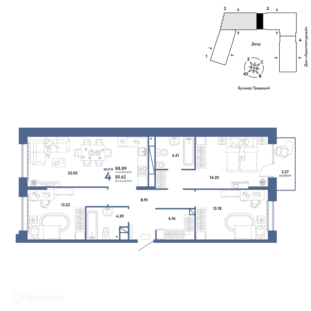 Площади квартир