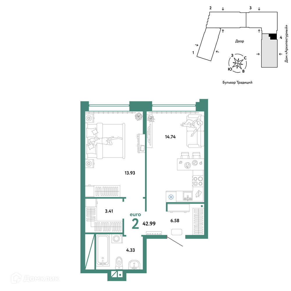 Доступна к покупке 2-комнатная квартира в новом жилом комплексе "ЖК «Домашний»" 🏢. Квартира расположена на 2-м этаже 16-этажного дома. Прекрасный выбор для инвестиций.