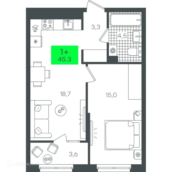 1 комн. квартира в Тюмени в ипотеку от 46 014 руб/месяц