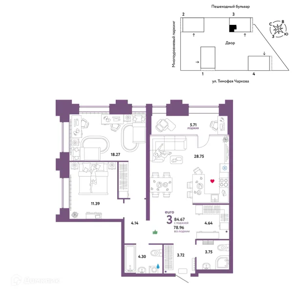 3 комн. квартира в Тюмени в ипотеку от 71 374 руб/месяц