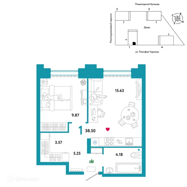 1 комн. квартира в Тюмени в ипотеку от 50 328 руб/месяц