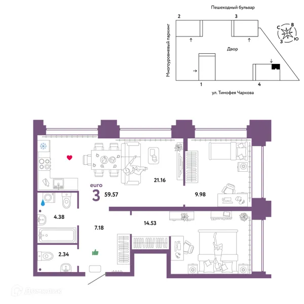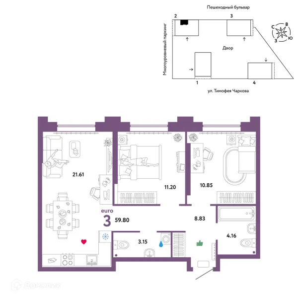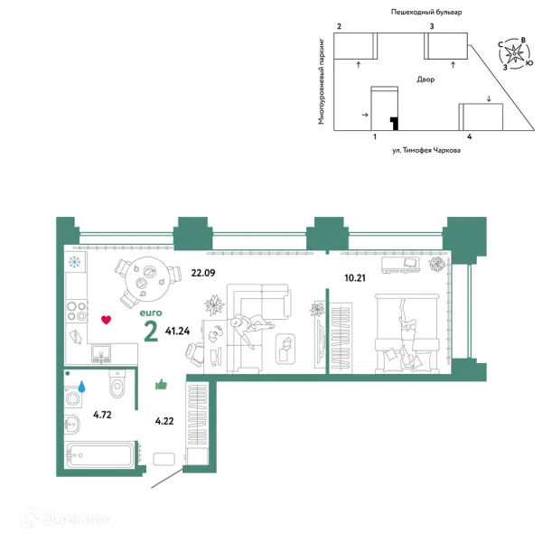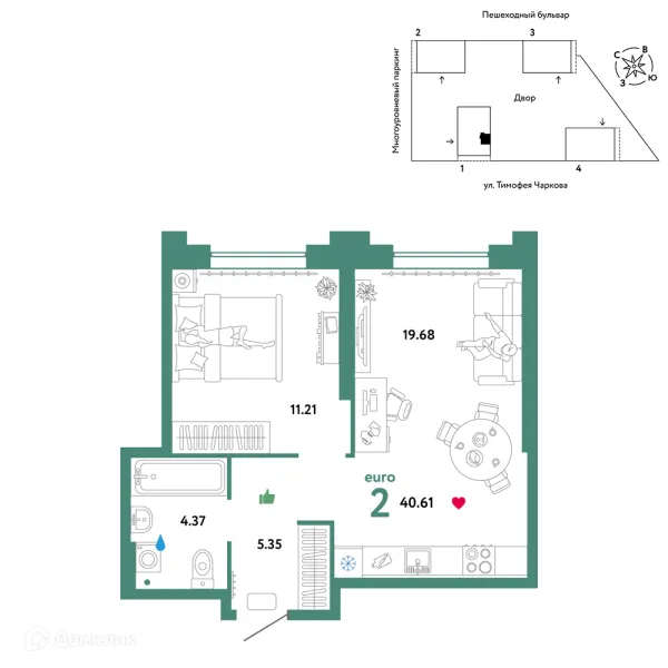 2 комн. квартира в Тюмени в ипотеку от 59 408 руб/месяц