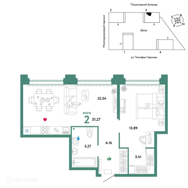 2 комн. квартира в Тюмени в ипотеку от 62 226 руб/месяц