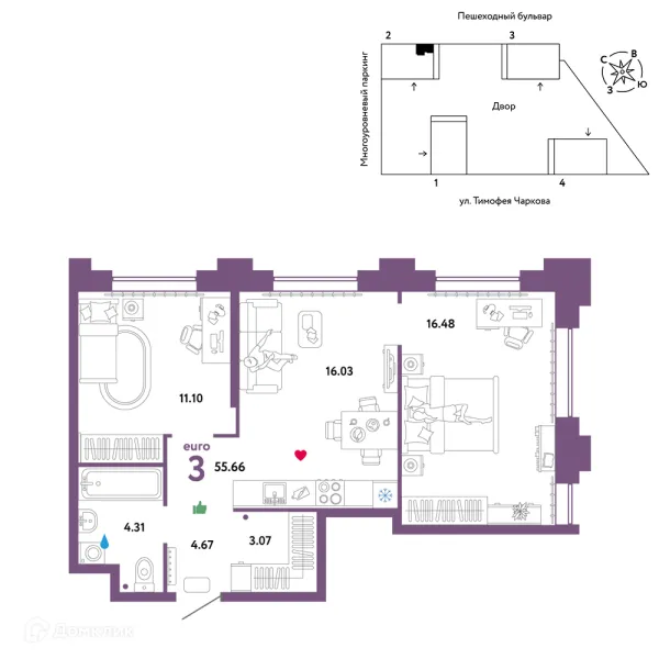 2 комн. квартира в Тюмени в ипотеку от 55 494 руб/месяц