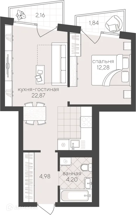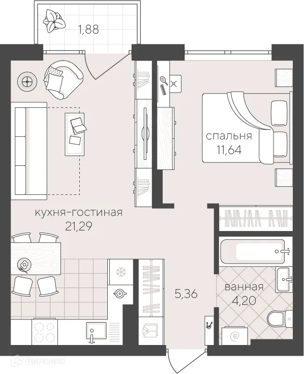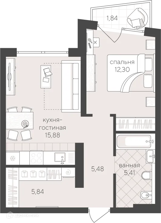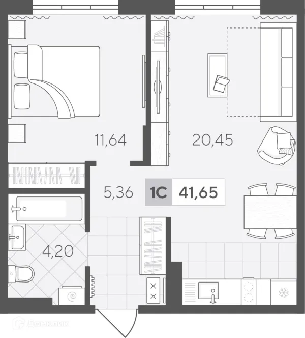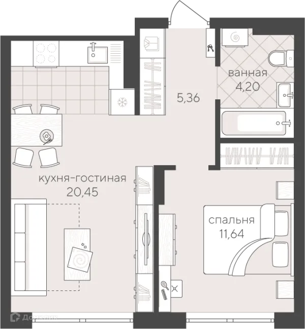1 комн. квартира в Тюмени в ипотеку от 41 765 руб/месяц