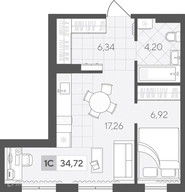 1 комн. квартира в Тюмени в ипотеку от 35 284 руб/месяц