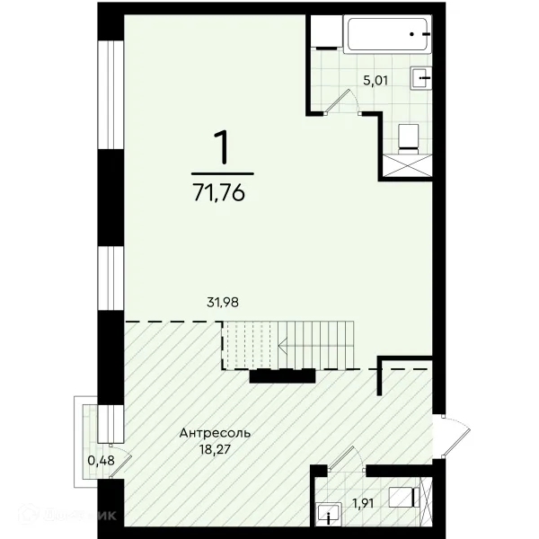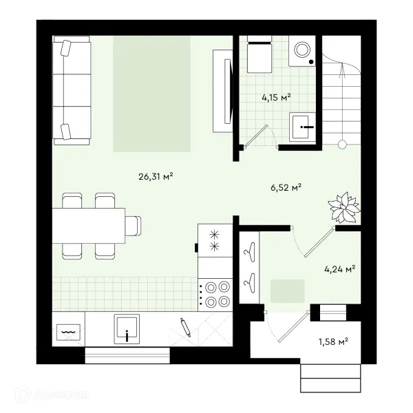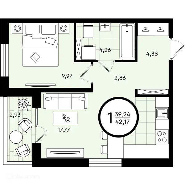 1 комн. квартира в Тюмени в ипотеку от 44 047 руб/месяц