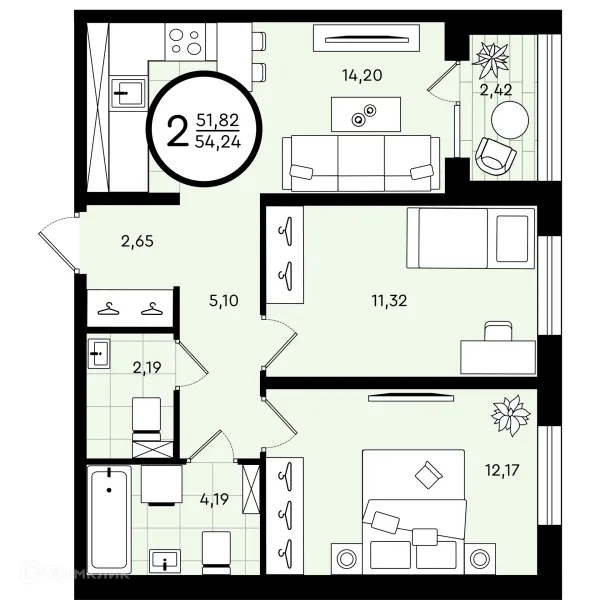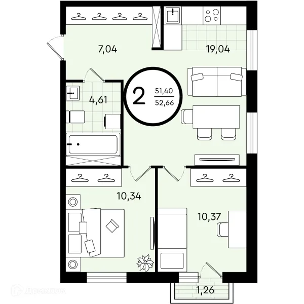 2 комн. квартира в Тюмени в ипотеку от 52 497 руб/месяц