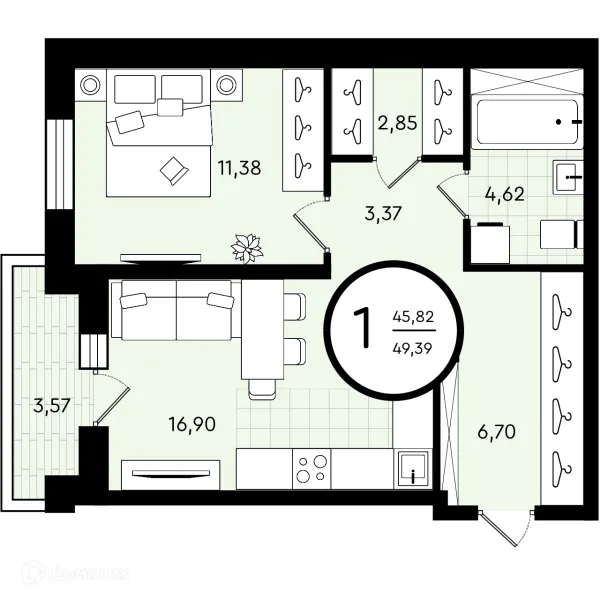 1 комн. квартира в Тюмени в ипотеку от 49 129 руб/месяц