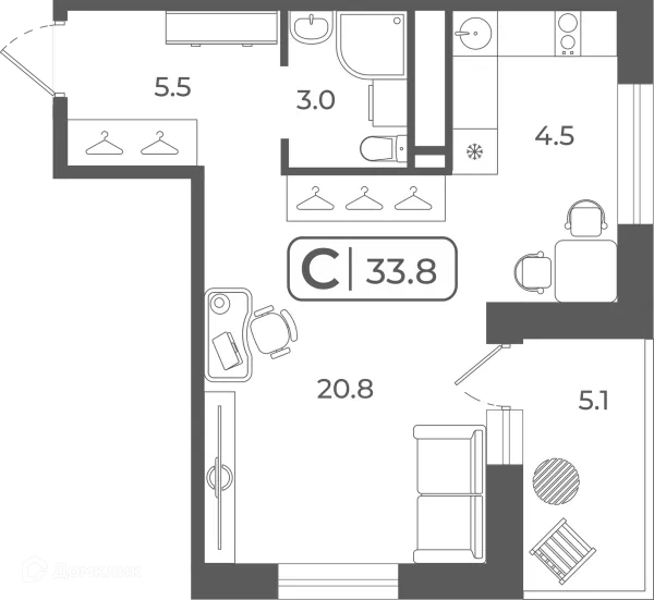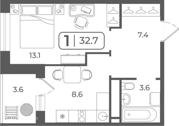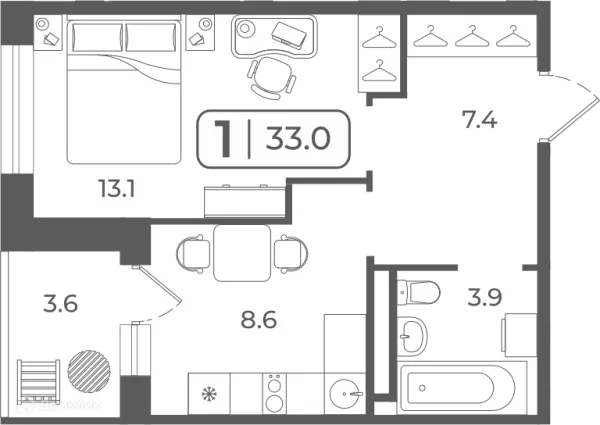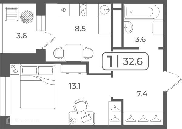 1 комн. квартира в Тюмени в ипотеку от 33 124 руб/месяц