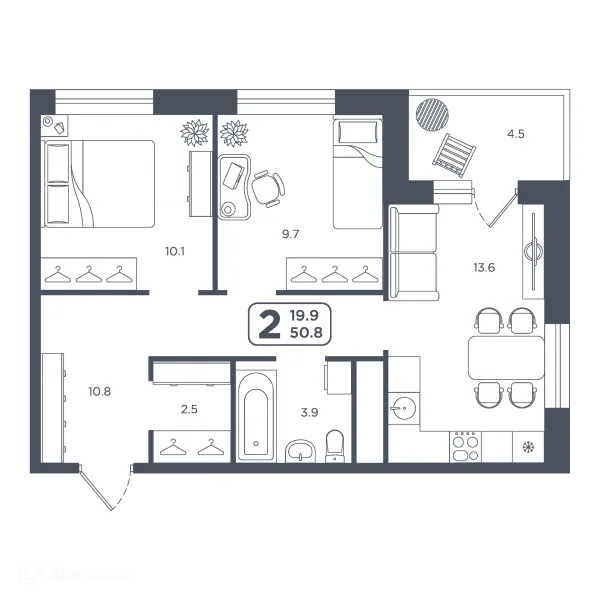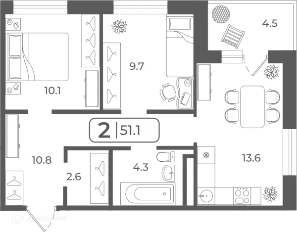2 комн. квартира в Тюмени в ипотеку от 46 086 руб/месяц