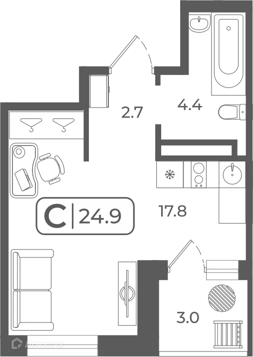 Студия квартира в Тюмени в ипотеку от 27 363 руб/месяц