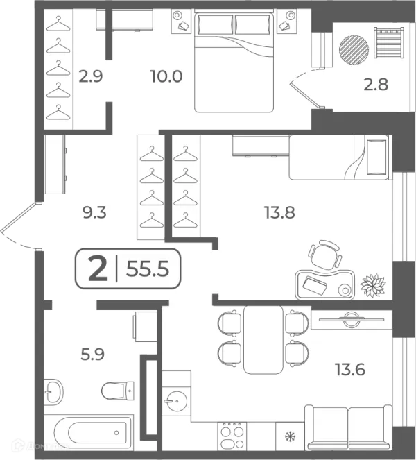2 комн. квартира в Тюмени в ипотеку от 46 446 руб/месяц