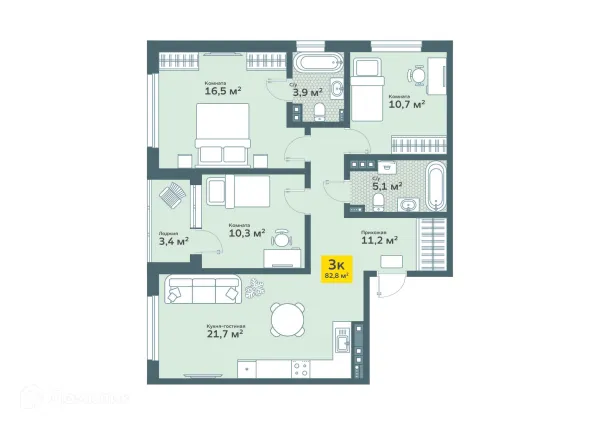 3 комн. квартира в Тюмени в ипотеку от 66 609 руб/месяц