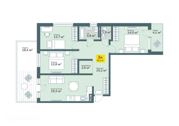 3 комн. квартира в Тюмени в ипотеку от 65 529 руб/месяц