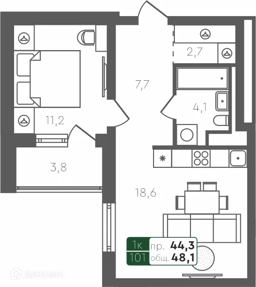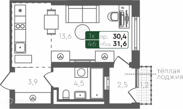 1 комн. квартира в Тюмени в ипотеку от 60 272 руб/месяц