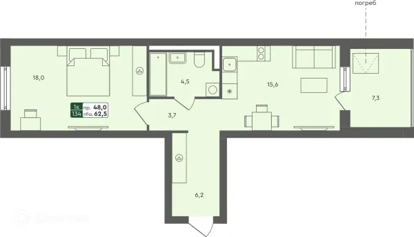 1 комн. квартира в Тюмени в ипотеку от 62 576 руб/месяц