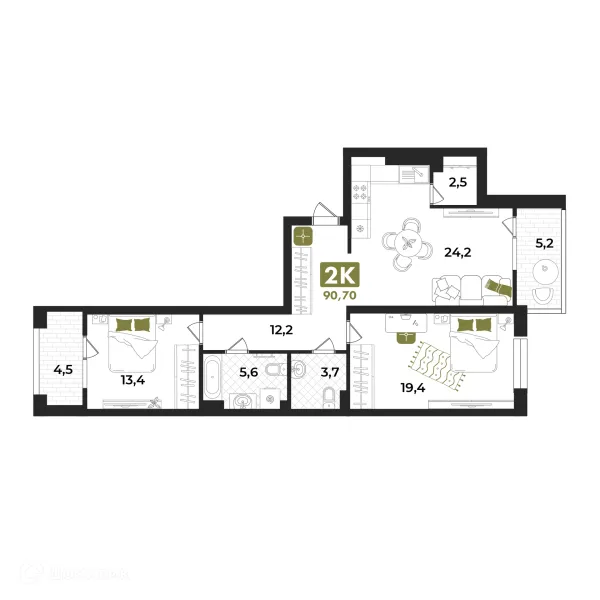 2 комн. квартира в Тюмени в ипотеку от 105 134 руб/месяц