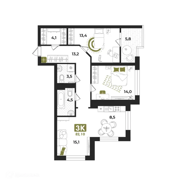 3 комн. квартира в Тюмени в ипотеку от 100 814 руб/месяц