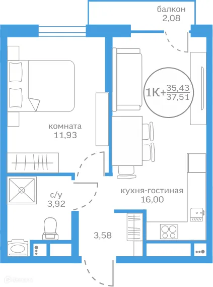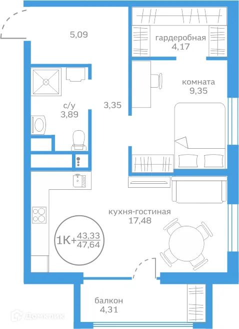 1 комн. квартира в Тюмени в ипотеку от 41 117 руб/месяц