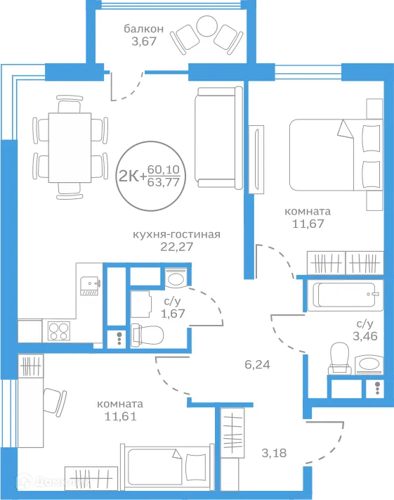 2 комн. квартира в Тюмени в ипотеку от 60 416 руб/месяц