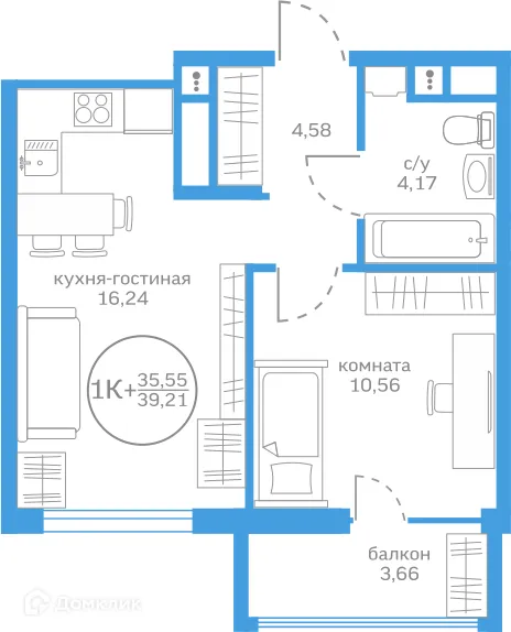 1 комн. квартира в Тюмени в ипотеку от 39 245 руб/месяц