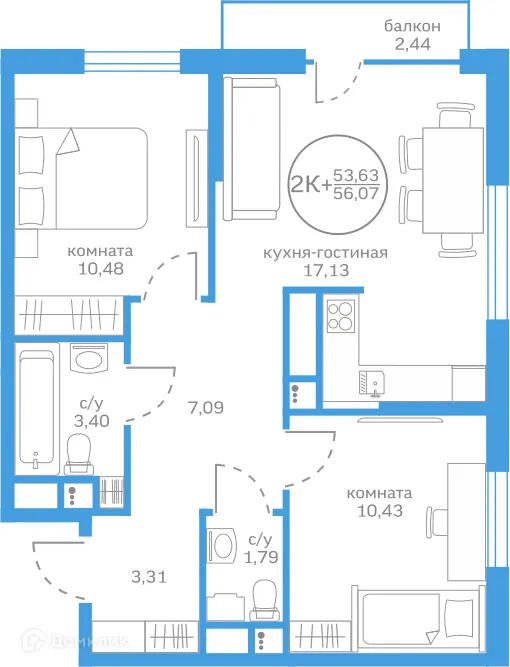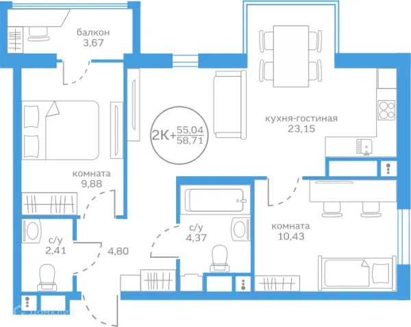 2 комн. квартира в Тюмени в ипотеку от 52 423 руб/месяц
