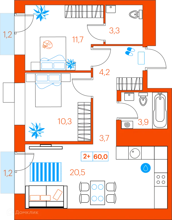 2 комн. квартира в Тюмени в ипотеку от 61 064 руб/месяц