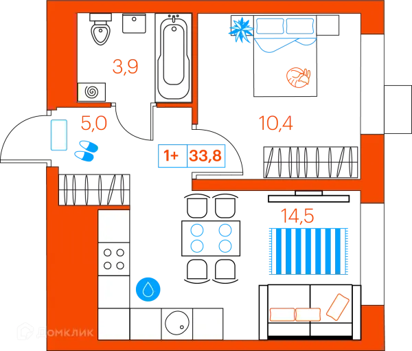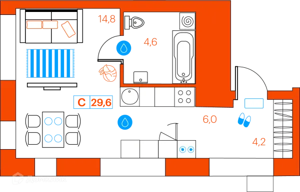 1 комн. квартира в Тюмени в ипотеку от 39 533 руб/месяц