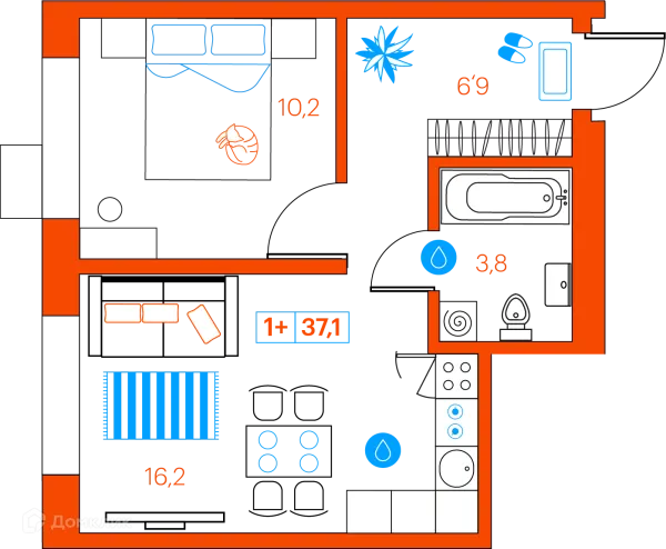 1 комн. квартира в Тюмени в ипотеку от 37 877 руб/месяц