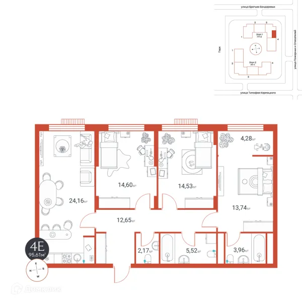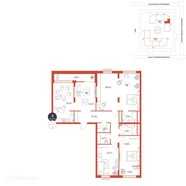 4 комн. квартира в Тюмени в ипотеку от 91 956 руб/месяц