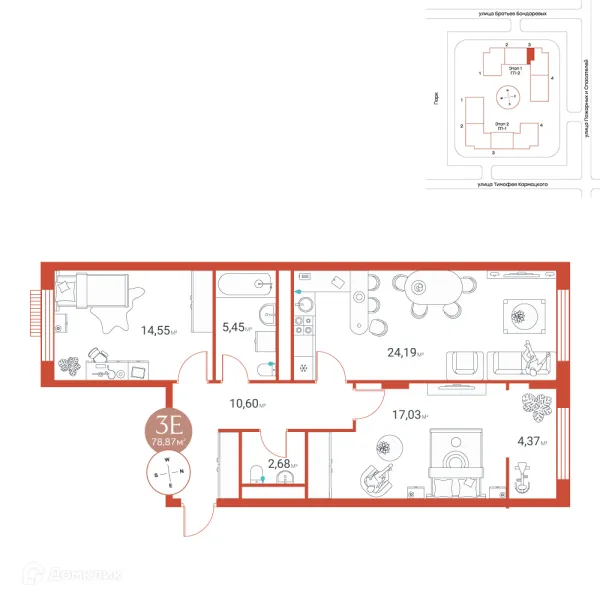 3 комн. квартира в Тюмени в ипотеку от 96 781 руб/месяц