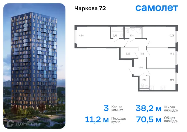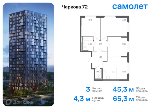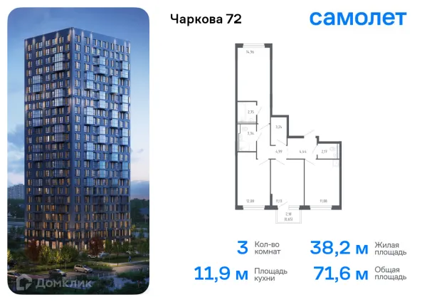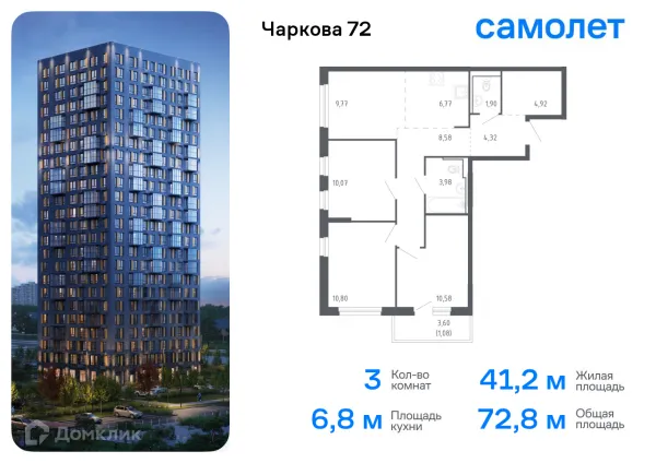 3 комн. квартира в Тюмени в ипотеку от 72 135 руб/месяц