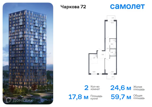 2 комн. квартира в Тюмени в ипотеку от 57 306 руб/месяц