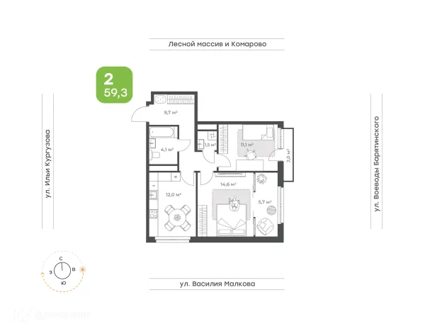 2 комн. квартира в Тюмени в ипотеку от 42 764 руб/месяц
