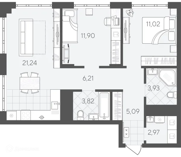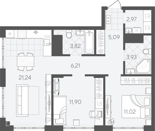 2 комн. квартира в Тюмени в ипотеку от 64 449 руб/месяц
