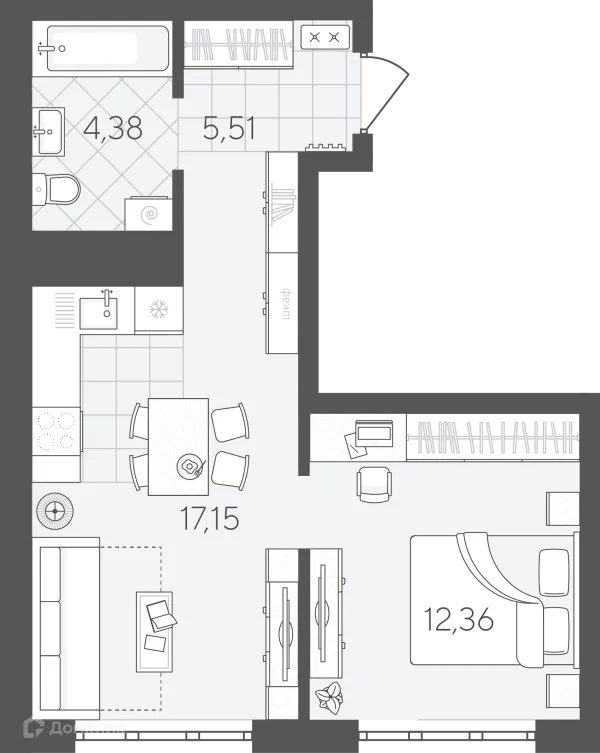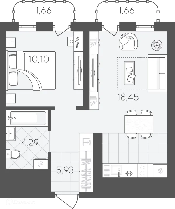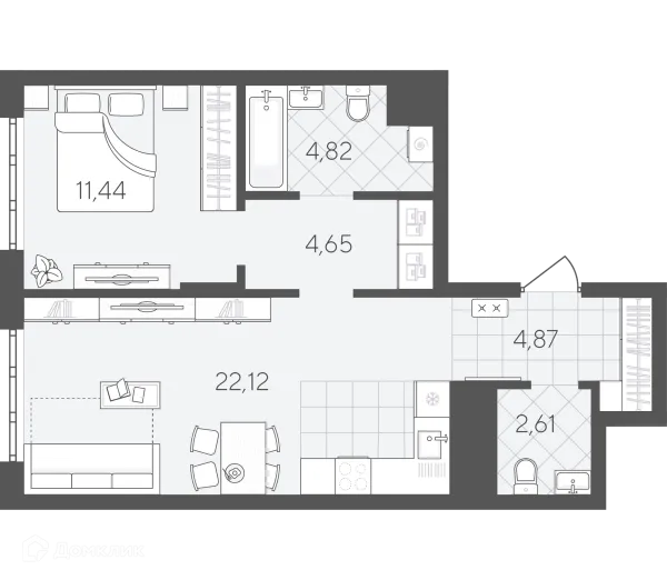 1 комн. квартира в Тюмени в ипотеку от 45 366 руб/месяц