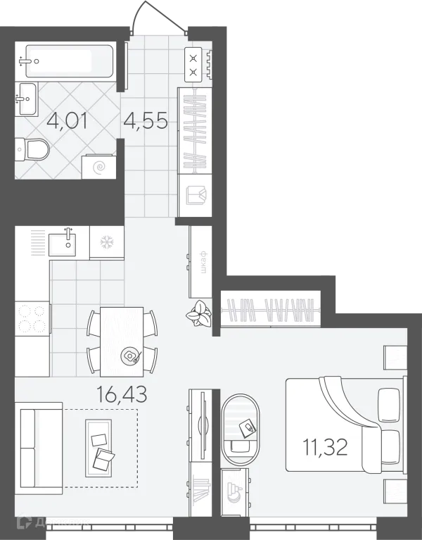 1 комн. квартира в Тюмени в ипотеку от 41 405 руб/месяц