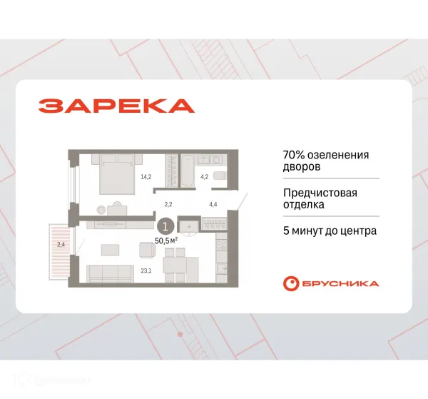 1 комн. квартира в Тюмени в ипотеку от 52 423 руб/месяц