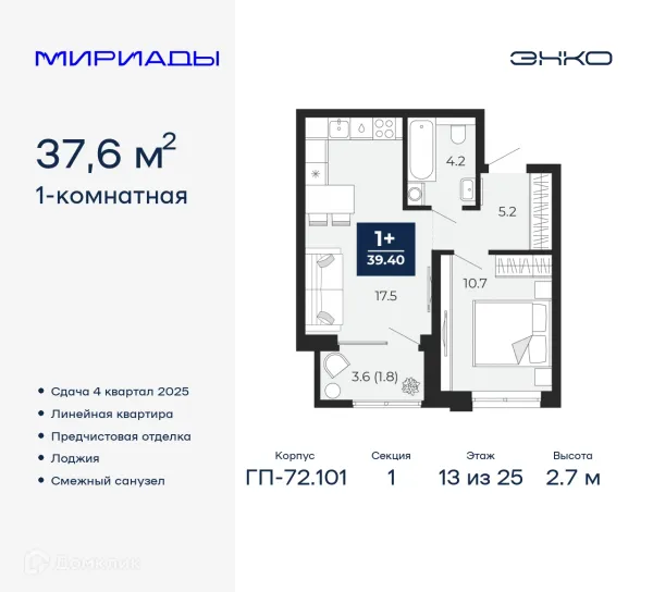 1 комн. квартира в Тюмени в ипотеку от 45 820 руб/месяц