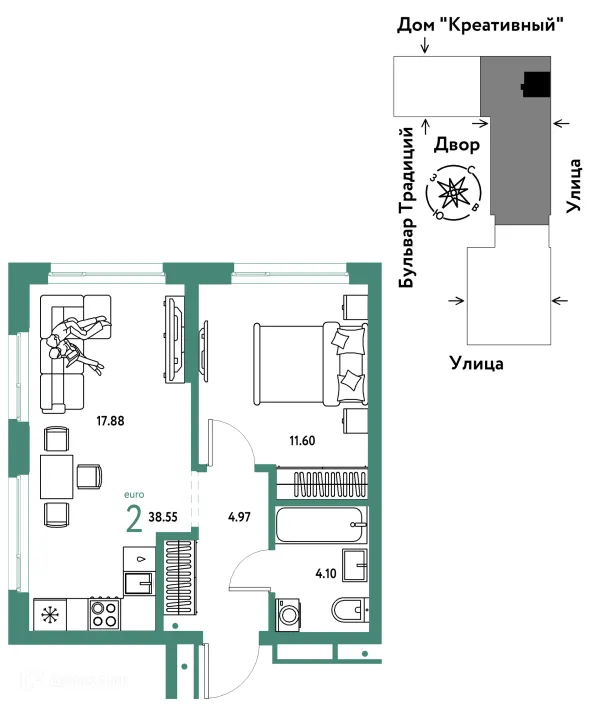 2 комн. квартира в Тюмени в ипотеку от 42 579 руб/месяц