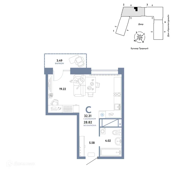 Студия квартира в Тюмени в ипотеку от 33 969 руб/месяц