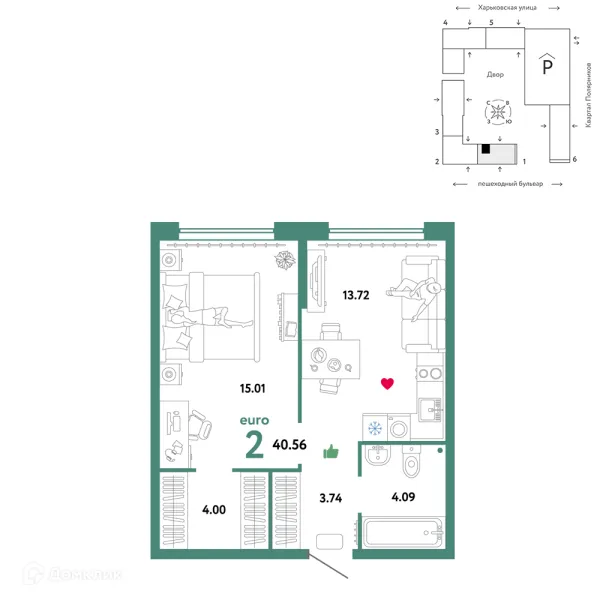 2 комн. квартира в Тюмени в ипотеку от 41 797 руб/месяц