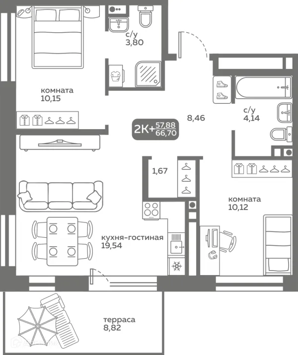 2 комн. квартира в Тюмени в ипотеку от 44 790 руб/месяц