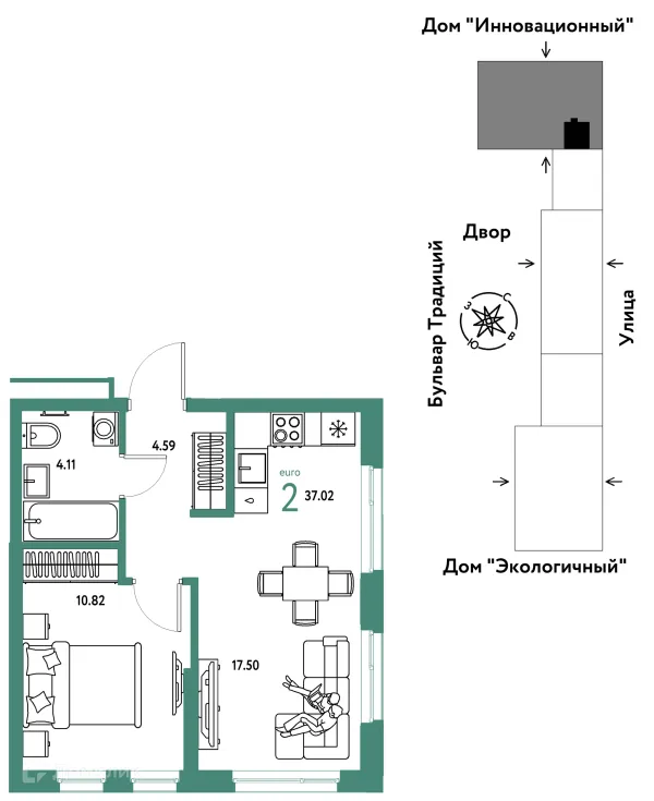 2 комн. квартира в Тюмени в ипотеку от 42 188 руб/месяц